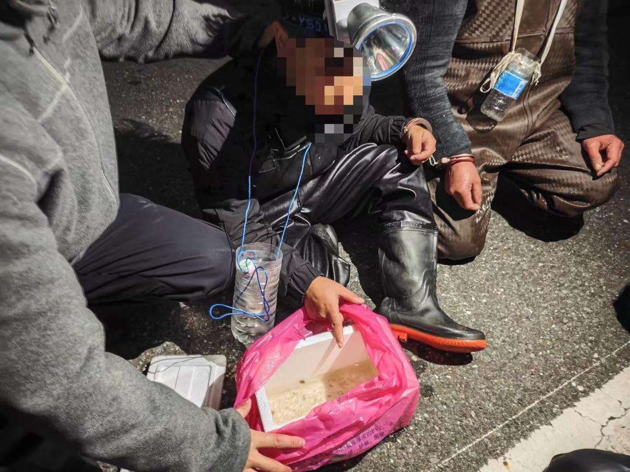 潮新闻记者从杭州市公安局钱塘区分局了解到,3月5日凌晨,位于钱塘区二十工段的江东闸附近有四人在钱塘江边非法捕捞鳗鱼苗被抓获。
